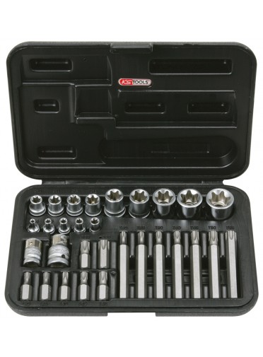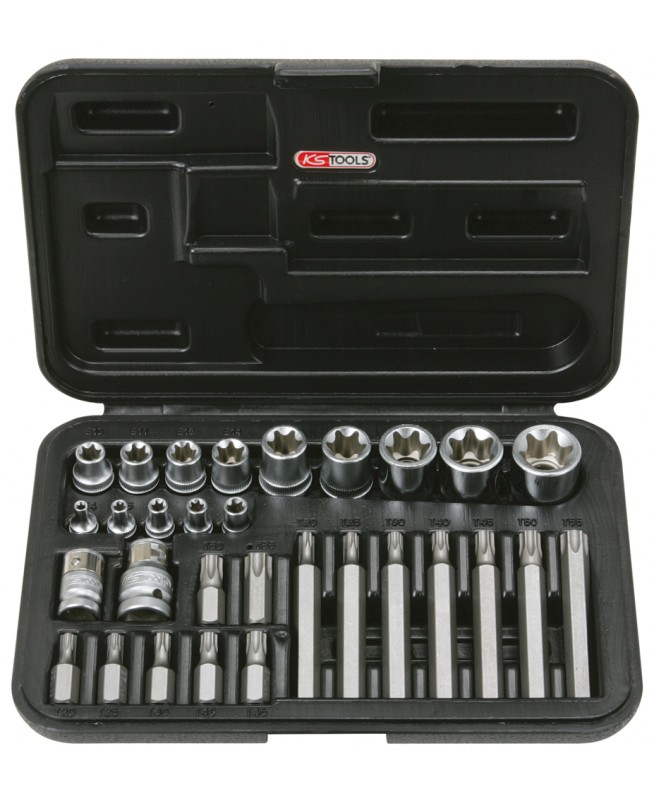 Coffret TORX® percé, 1/4'' - 3/8'' - 1/2'' - E4 à E24 - T20 à T55 - 30 pcs