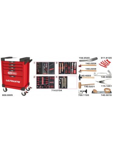 Servante ULTIMATE 5 tiroirs avec composition d’outils pour la carrosserie. 166 p