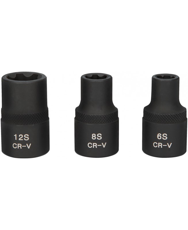 Jeu de 3 douilles à chocs RIBE femelle 1/2'' pour culasse, 65 - 85 - 125 mm