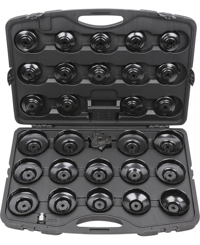 Coffret de cloches pour filtre à huile 3/8'' + 1/2'', 30 pcs