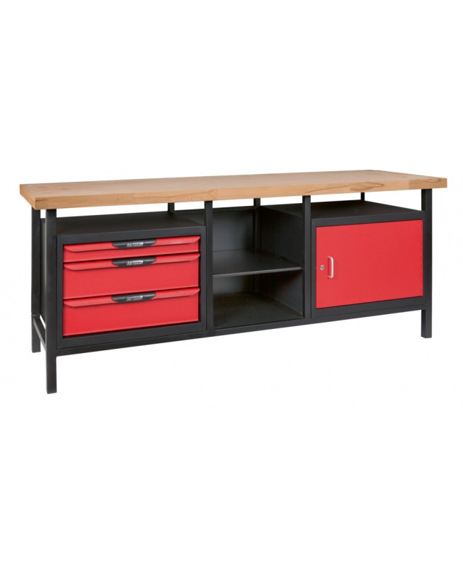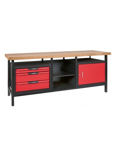 Etabli professionnel d'atelier 1 porte et 3 tiroirs. L.2m