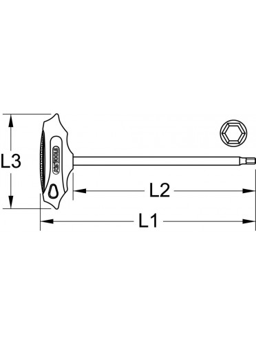Clé mâle tête sphérique poignée en ''T'' BERYLLIUMplus 12mm. 255mm
