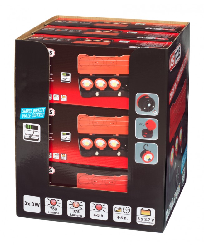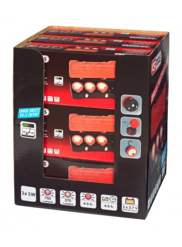 Présentoir de 9 coffrets de 3 projecteurs LEDs 3W