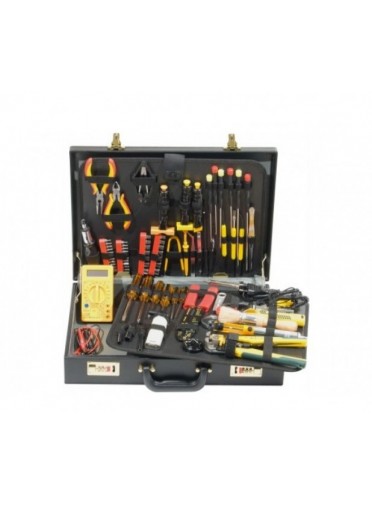 Malette complète de 80 outils, sous forme d'attaché-case simili cuir avec serrur
