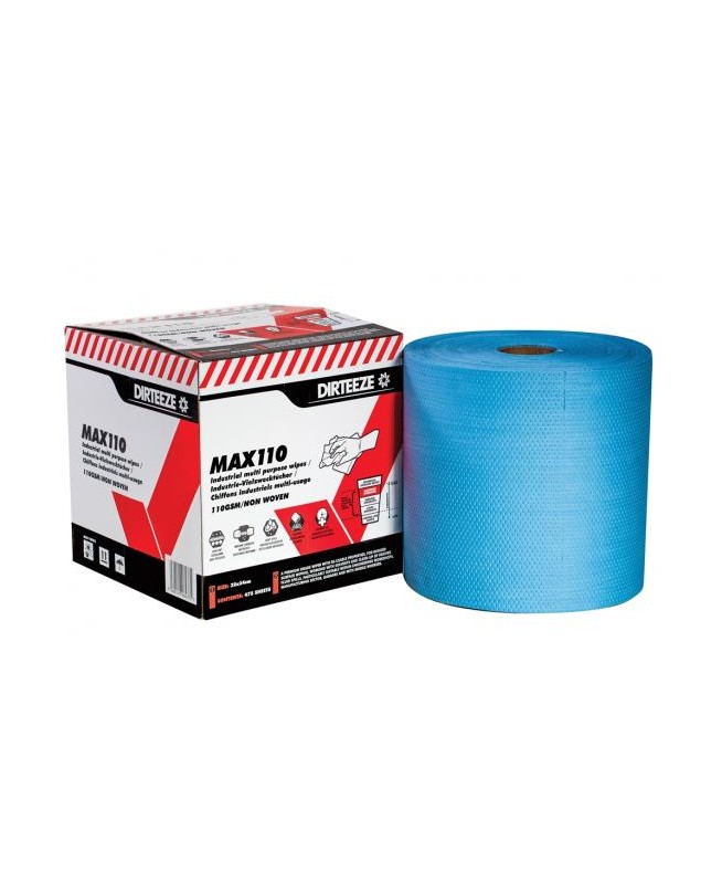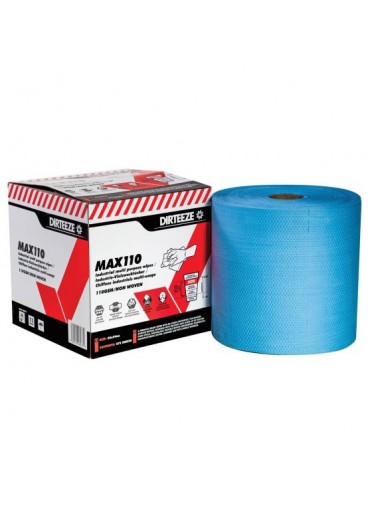 Essuyage non tissé en fibres cellulose et polypropylène, couleur bleu, bobine de 475 formats (32 x 34 cm), épaisseur 110 gr/m2, aspect nid d'abeille. 1 bobine de 51,68 m2. Palettisation : 60 rouleaux.