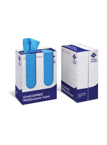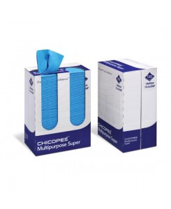 Essuyage non tissé en fibres cellulose et polyester, couleur : bleu, distributeur de 130 formats (34 x 53 cm), épaisseur 80 gr/m2. (23,43 m2). Palettisation : 72 distributeurs.
