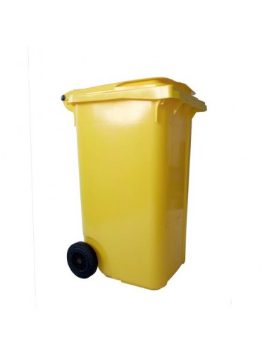 Kit d'intervention pour hydrocarbures, capacité d'absorption 200 litres. Contenant : conteneur 2 roues 240 L jaune (575 x 730 x 1060 mm). Contenu : 100 feuilles double épaisseur 40 x 50 cm, 3 boudins 8 cm x 3 m, 6 coussins 40 x 40 cm, 25 feuilles d'essuyage, 2 paires de gants nitrile, 1 paire de lunettes, 4 sacs de récupération 100 litres.