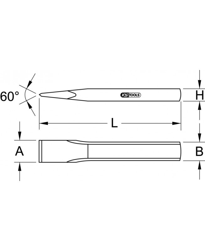Burin nervuré tête ovale 27mm, Longueur 200mm