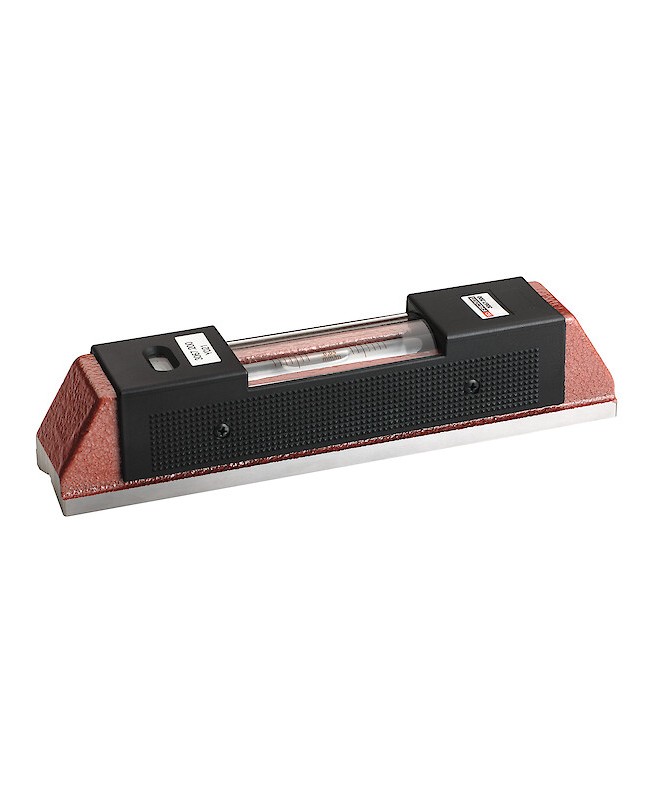 NIVEAU DROIT HAUTE PRECISIONNiveau droit de haute précision en fonte stabilisée - longueur 200 mm - précision 0,04 mm/m - flancs munis de plaquettes isolantes antiglisse - fioles protégées par un plexiglas incolore - base prismatique avec Vé 140° - Facom 3067.200 - UC : MULTIPLE DE : 1