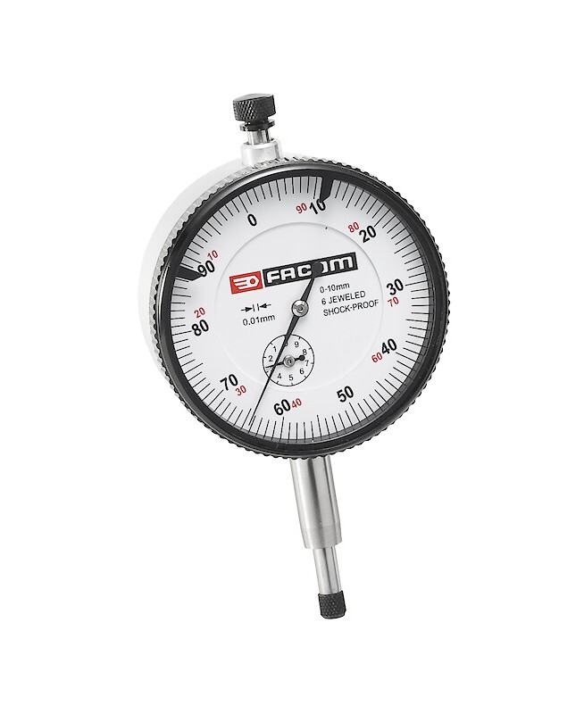 COMPARATEUR ANTICHOC 1/100EMEComparateur - précision 1/100 de mm - course 10 mm enregistrée avec totaliseur - cadran tournant Ø 57 mm - touche de mesure interchangeable - Facom 812B.AC MULTIPLE DE : 1