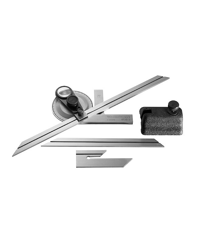 RAPPORTEUR ANGLE DE PRECISIONRapporteur d'angle de précision - capacité de lecture 0 - 360° - dimensions 315 x 75 x 20 mm - règle courte de 200 mm x 16 mm - règle longue de 300 mm x 16 mm - règle décalée de 85 mm x 16 mm - loupe de grossissement - Facom 813B.S MULTIPLE DE : 1