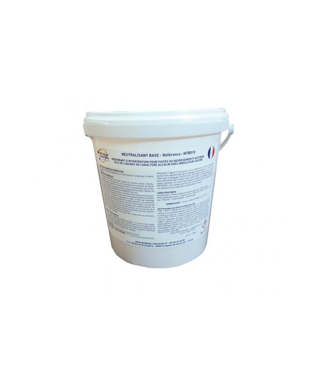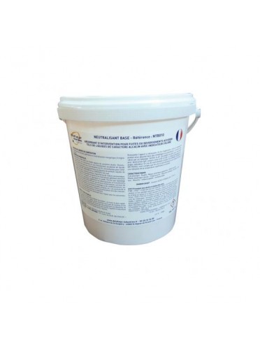 Neutralisant chimique pour les Bases. Agit par gélification et changement de couleur pour signifier la neutralisation du PH. Seau de 5 L, poudre de couleur blanche.