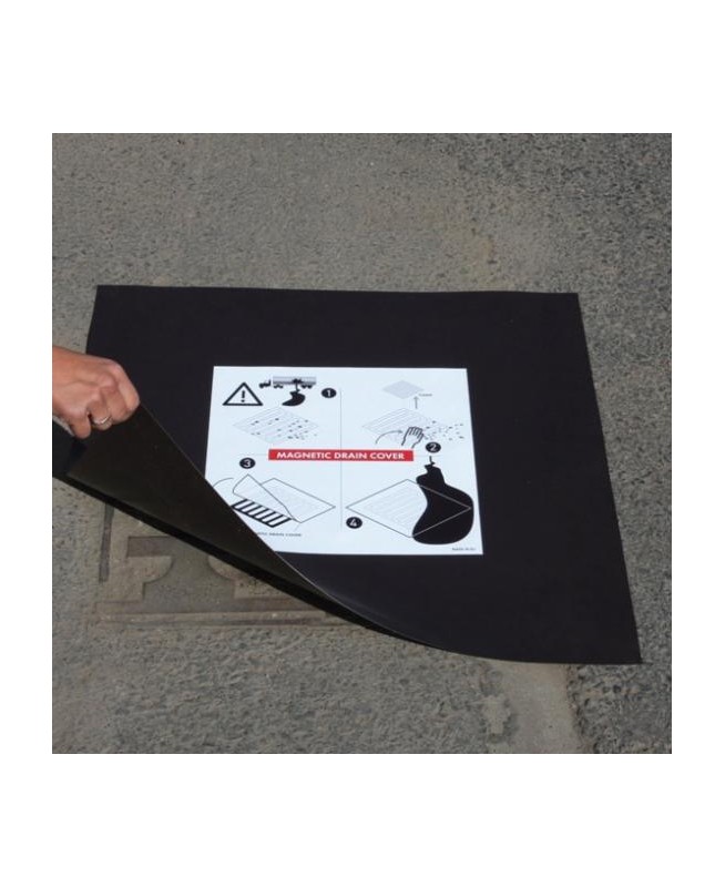 Obturateur de surface magnétique pour regard 90 cm x 90 cm. Pour obturer les regards en fonte ou en acier. Résistant aux principaux acides et aux hydrocarbures. Réutilisable. Unité de vente : 1 plaque 100 x 100 cm. Epaisseur 0,9 mm.