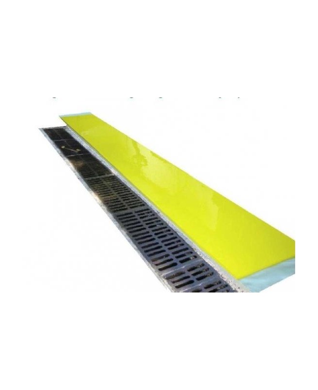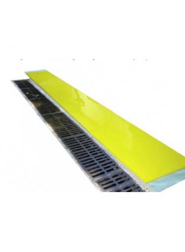 Obturateur occasionnel de surface, grande longueur pour protection des caniveaux. Polyuréthane, adhésif 2 : 1 face adhésive très collante, 1 face avec revêtement Polyester siliconé pour la protection et la résistance mécanique. Avec 2 poignées de chaque côté. Réutilisable. Dim. : 300 x 45 cm, épaisseur : 8 mm, poids : 12 kg. Couleur : Jaune.UV = 1 obturateur