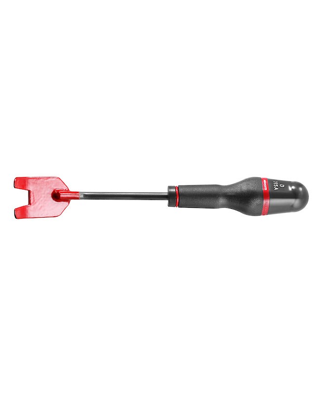 OUTIL POUR DEPOSER GARNITURESSpatule fourchette pour manneaux et garnitures de portes - permet un démontage sans abimer des panneaux et garnitures de portes - FACOM D.115A MULTIPLE DE : 1