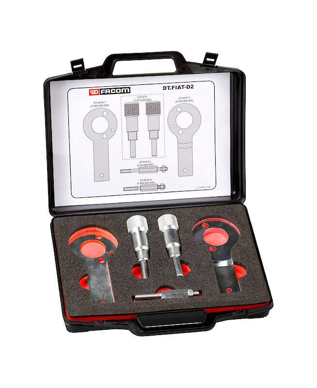 COFFRET DE CALAGE POUR FIAT DCoffret de calage FIAT moteurs diesel N°2 - pour Moteurs Diesel à courroie : JTDM, MULTIJET, CDTi, JTD - Marques : FIAT- ALFA - LANCIA - OPEL - livré en coffret plastique - FACOM DT.FIAT -D2 MULTIPLE DE : 1