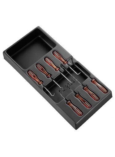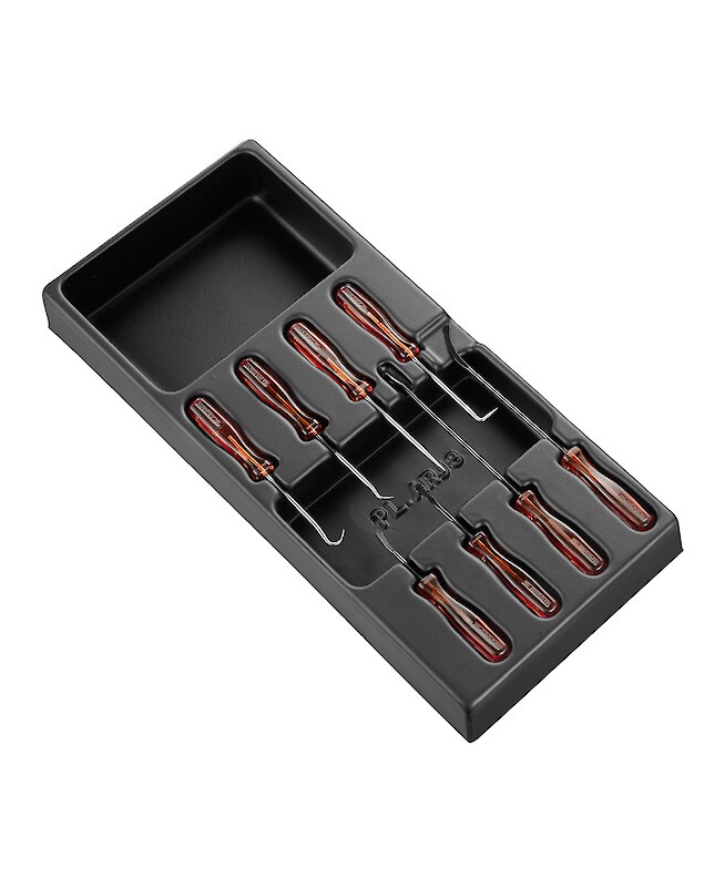 MODULE DE 8 PICS ET SPATULESCoffret comprenant 4 crochets de précision de différentes tailles et formes - crochet droit et courbe, à 45° et 90° - pour retirer les joints, séparer, décoller, déclipser des petites pièces - FACOM MOD.ARCJ8L MULTIPLE DE : 1