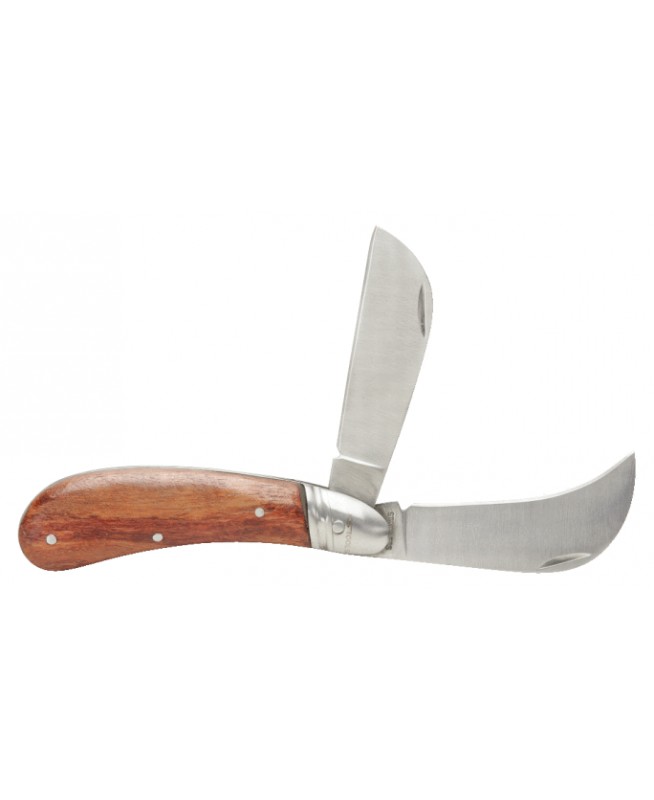 Couteau d'éléctricien avec 1 lame serpette et 1 lame droite Inox