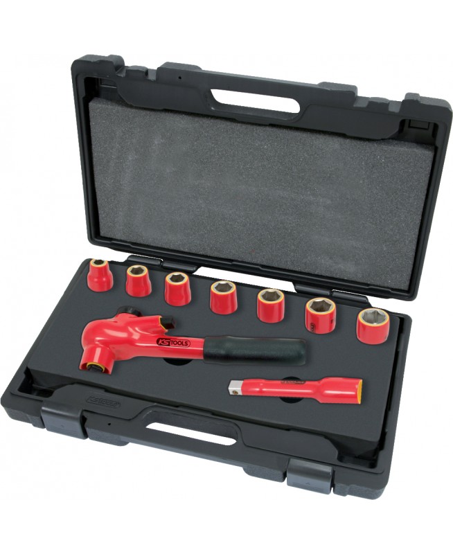 Coffret de douilles isolées 1000V 1/2'' avec cliquet et rallonge - 9 pcs