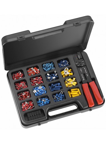 COMPOSITION COSSES MAINTENANCEComposition cosses maintenance livrée avec pince à sertir 449B - assortiment de 20 modèles de cosses (œillets, fourches, manchons, cosses mâles et femelles) - FACOM 449.Z3A MULTIPLE DE : 1