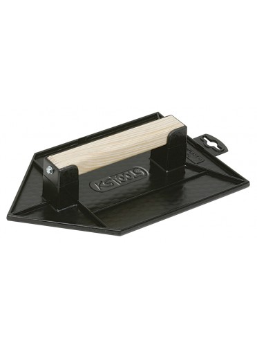 Taloche plastique noire pointue - Poignée bois - Plateau alvéolé - 140x80 mm