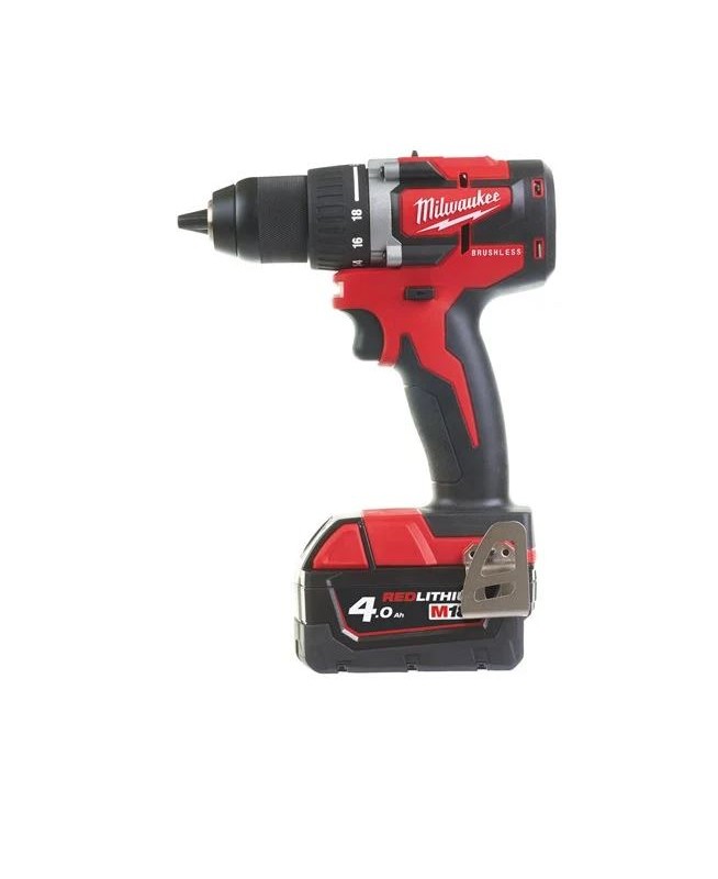 18V Compact Brushless Drill Driver, 2 x 4.0 Ah Li-Ion battery, 1h charger model M18CBLDD-402C / battery platform : M18 / application : Drilling and Chipping / tool : Drill Driver