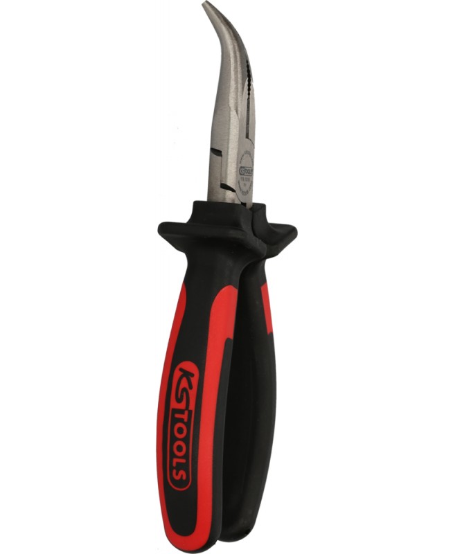 Pince à bec demi-rond coudé à poignée bi-composants, L. 210 mm