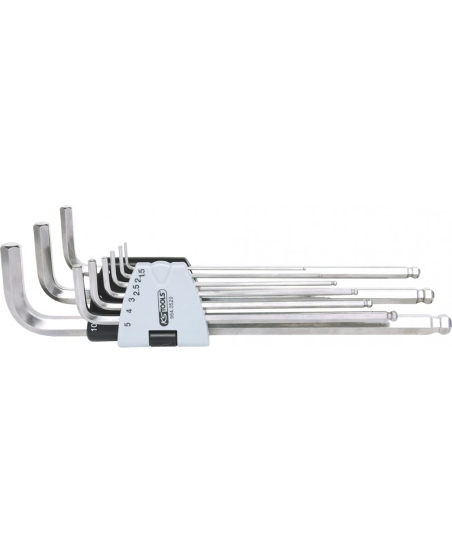 Jeu de clés mâles INOX 6 pans à tête sphérique. extra-longues - 9 pcs