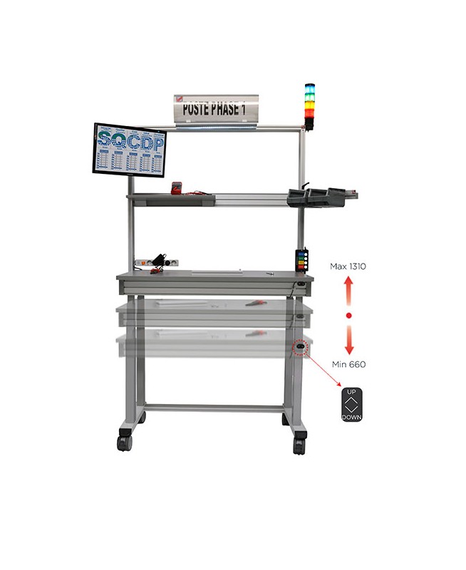 QUALIPOST 3200 ERGO électrique l 800 x P 750 x H 660 - 1310 mm avec plateau stratifié Page catalogue 2021 Assembled Prémonté