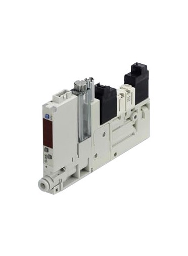 Quand on dispose déjà de l'un des générateurs de vide les plus légers et les plus étroits sur le marché il est difficile de voir comment l'améliorer Cela n'a pas empêché nos ingénieurs de trouver une autre idée fantastique En remplaçant le pressostat existant du générateur par notre pressostat étroit ZSE10 nous pouvons réduire considérablement les erreurs de réglage d'entrée et grâce à la fonction de recopie des unités des stations multiples peuvent facilement être copiées et réglées depuis l'unité maître Les avantages de performance de cette nouvelle combinaison incluent également une visibilité améliorée du large indicateur visuel une manipulation facilitée (remplacement des potentiomètres par des boutons) et une consommation d'énergie réduite jusqu'à 20 % grâce à la fonction économie d'énergie