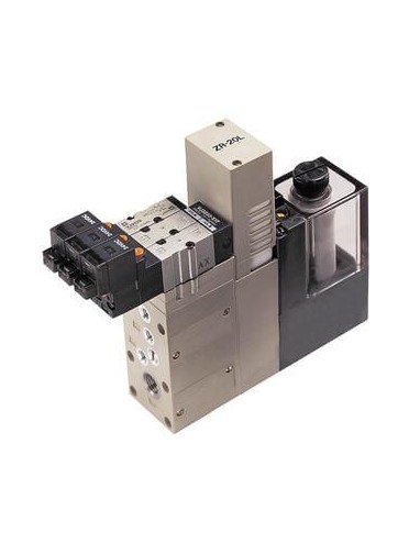 Le ZR le plus large est un venturi à un seul étage Sa conception modulaire permet à l'utilisateur de choisir uniquement les composants requis pour l'application La série ZR est disponible avec une combinaison de générateur une unité de vanne d'alim/d'échap une unité de pressostat et de filtre d'aspiration Commandez sans unité de venturi pour l'utiliser comme un ensemble de vanne et de filtre pour les systèmes de vide domestiques Les plaques de sélection spéciales permettent d'utiliser l'air de l'usine pour créer le vide et de l'azote pour le soufflage Disponible avec une configuration autonome ou sur embase