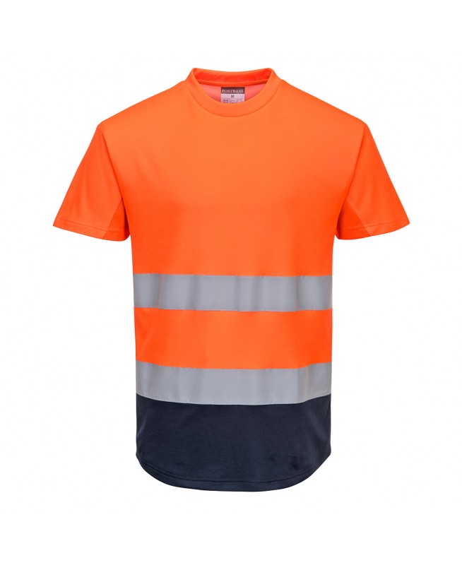 Two-Tone Mesh T-Shirt /couleur : Orange/Navy /size : XL /fit : R /qté : 48 /longeur : 55.0 / largeur : 36.0/ taille : 34.0