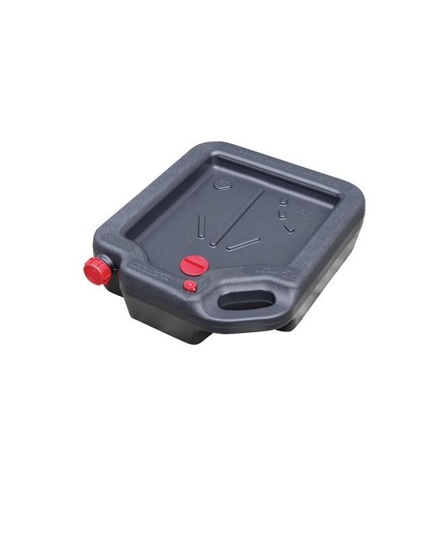 Bac de vidange fermé, capacité 15 litres, fabrication en polyéthylène haute densité (PEHD) résistant aux acides, bases, huiles et essences. Bouchon de vidange avec évent, fond de trémie avec bouchon et 1 poignée de transport. Dimensions : 51 x 44 x 15,5 cm, coloris noir, poids 1,2 kg.