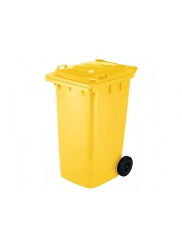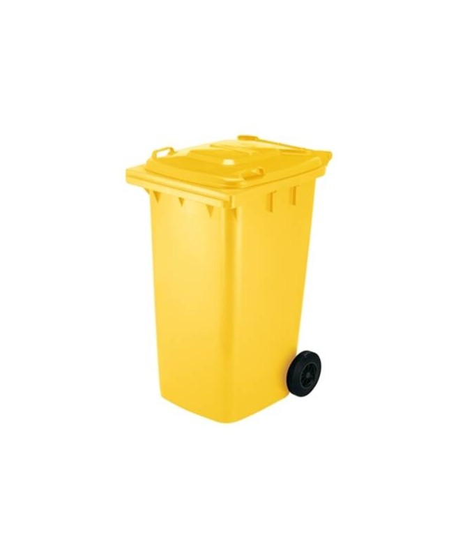 Conteneur PEHD mobile (2 roues) avec couvercle. Capacité : 360 litres, charge maxi : 165 kg. Dim. : L580 x P875 x H1080 mm. Poids : 19 kg. Couleur jaune