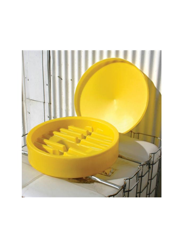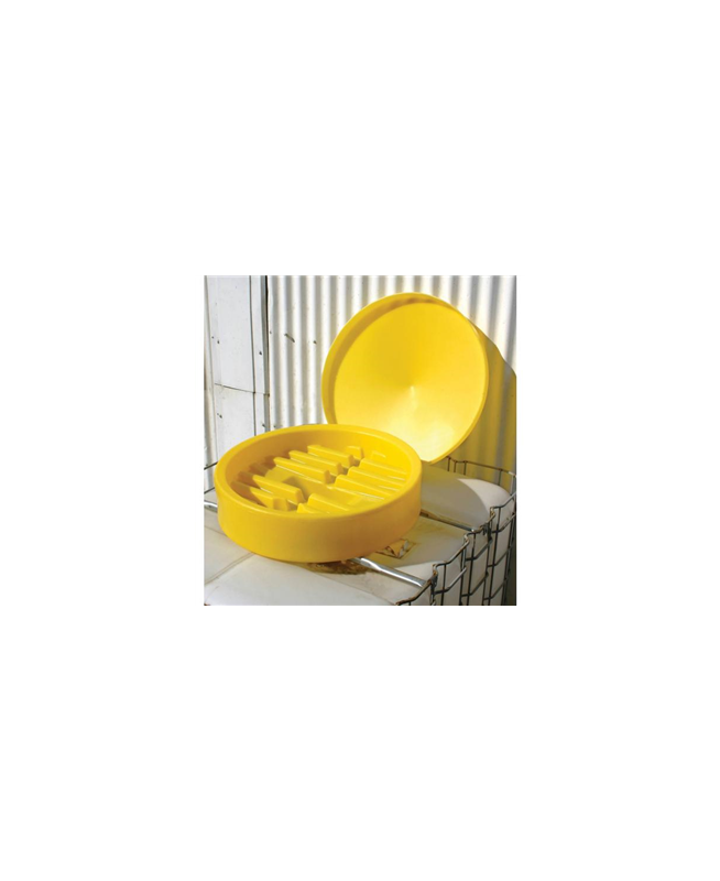 Entonnoir avec couvercle pour cubitainer 1000 litres. Fabriqué en polyéthylène. Rétention : 20 litres - dim. : Ø 640 x 150 mm - couleur : jaune, poids : 4 kg