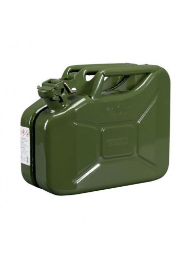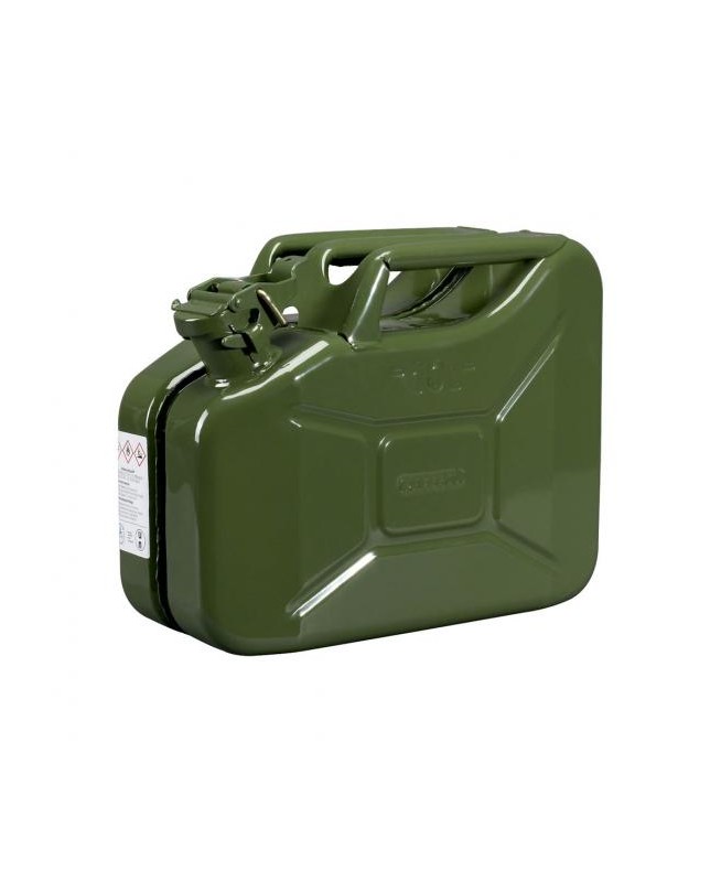 Jerrican tôlé de 5 litres. Pour le stockage et transport de carburant : gasoil et essence sans plomb. Intérieur laqué. Homologué ADR/UN pour le transport de matières dangereuses. Dim. : 120 x 310 x H230 mm, poids : 1,7 kg.