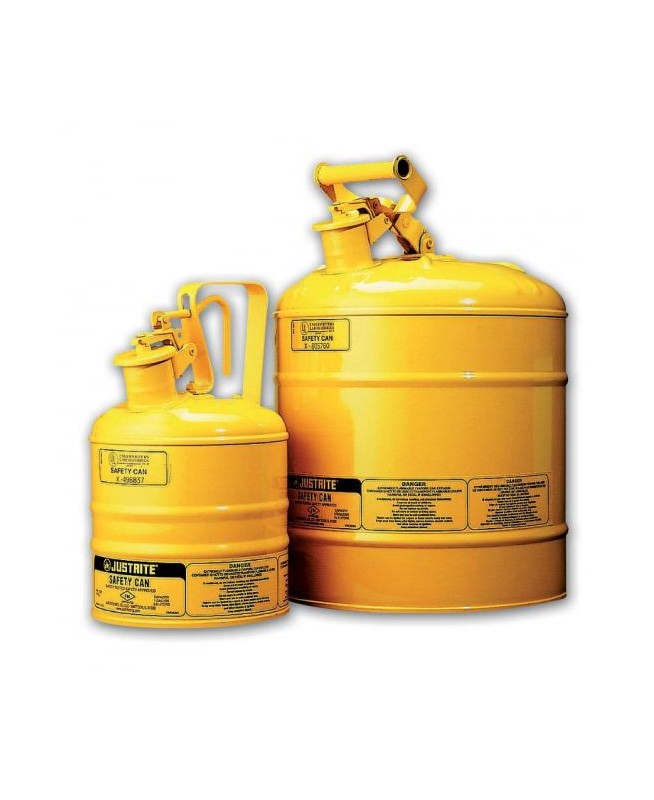 Bidon de sécurité métallique pour solvants et produits inflammables. Poignée à g