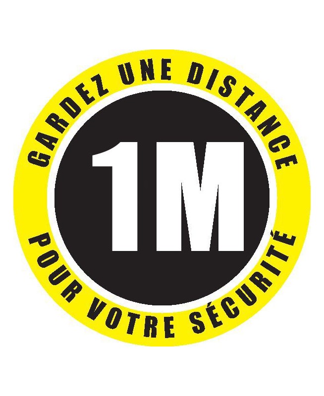 Lot de 2 pictogrammes adhésifs au sol Dia 300 mm : Gardez vos distances 1M