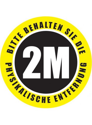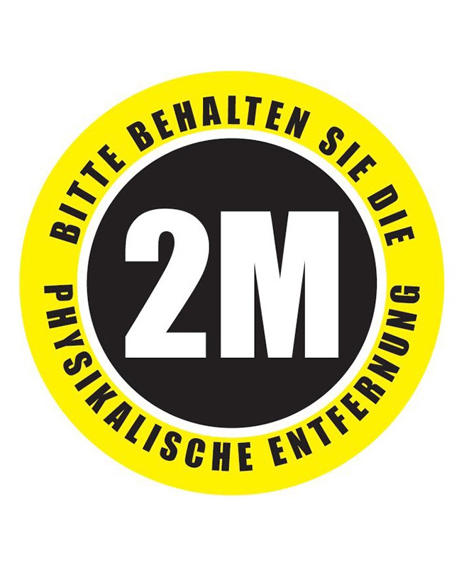 Lot de 2 pictogrammes adhésifs au sol Dia 100 mm : Gardez vos distances Allemand 2M