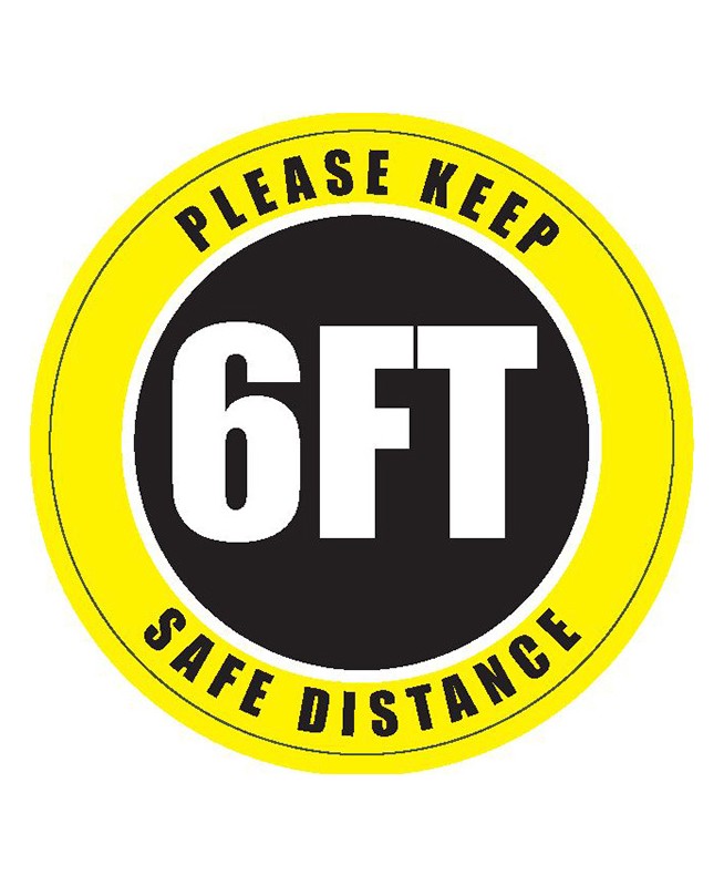 Lot de 2 pictogrammes adhésifs au sol Dia 150 mm : Gardez vos distances 6FT Angl
