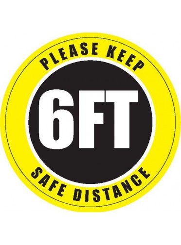 Lot de 2 pictogrammes adhésifs au sol Dia 300 mm : Gardez vos distances 6FT Angl