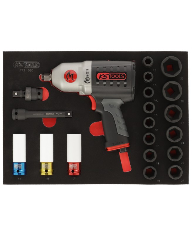 Module de douilles et clé à chocs pneumatique 1-2''. 20 pièces