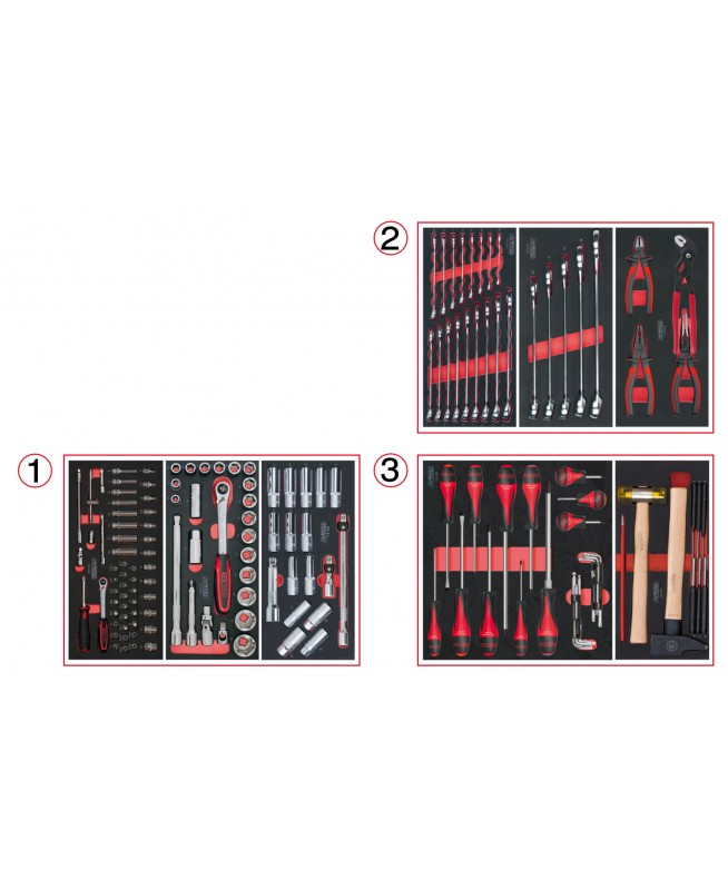 Composition d'outils 3 tiroirs pour servante. 158 pièces