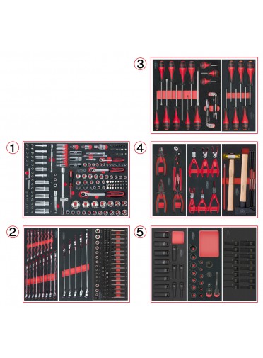 Composition d'outils 5 tiroirs pour servante. 384 pièces