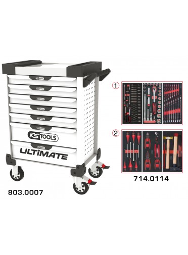 Servante ULTIMATE blanche 7 tiroirs équipée de 114 outils