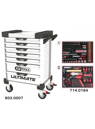 Servante ULTIMATE blanche 7 tiroirs équipée de 184 outils