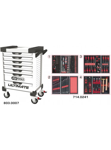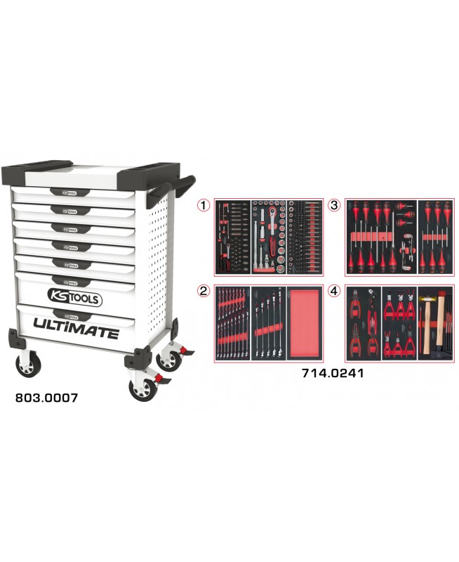Servante ULTIMATE blanche 7 tiroirs équipée de 241 outils