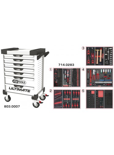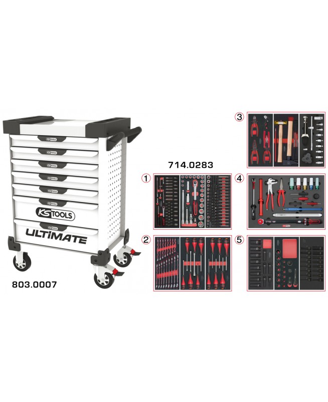 Servante ULTIMATE blanche 7 tiroirs équipée de 283 outils