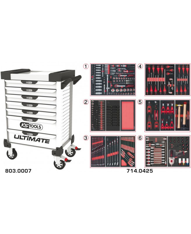 Servante ULTIMATE blanche 7 tiroirs équipée de 429 outils