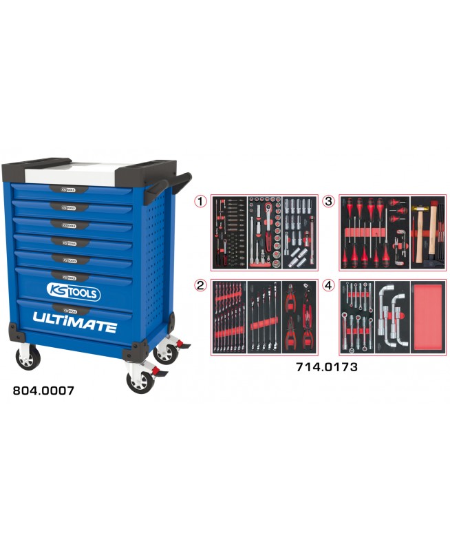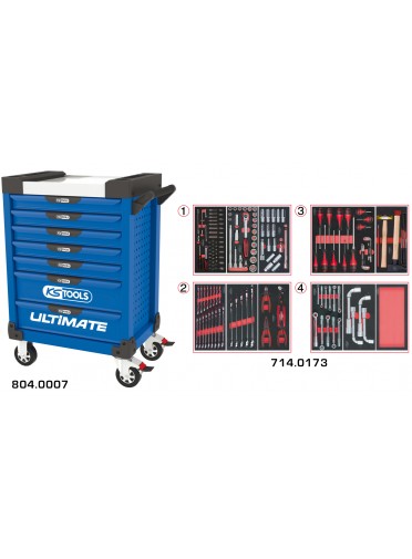 Servante ULTIMATE bleue 7 tiroirs équipée de 173 outils